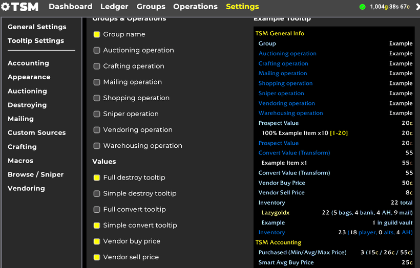 With current prices on my realm you can craft a White Bandit mask for about 36 silver and the disenchant value is 52 silver. Now unusually the value is spread out across all the possible outcomes. You are still making a substantial profit, but you do need to consider everything. Tradeskillmaster’s disenchant calculation will generally be enough to figure out if it’s worth it, so make sure you set it up under tooltip settings.